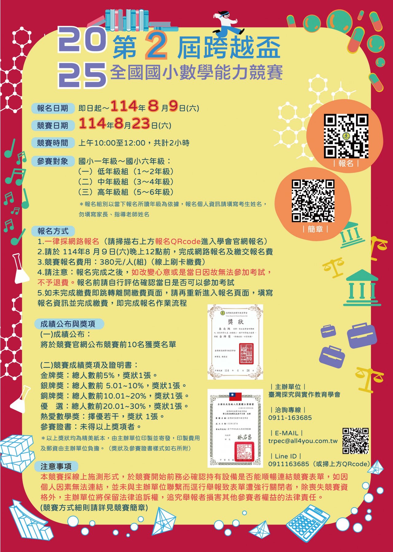 三、 競賽日期:114年8月23日(六)上午10:00~12:00。