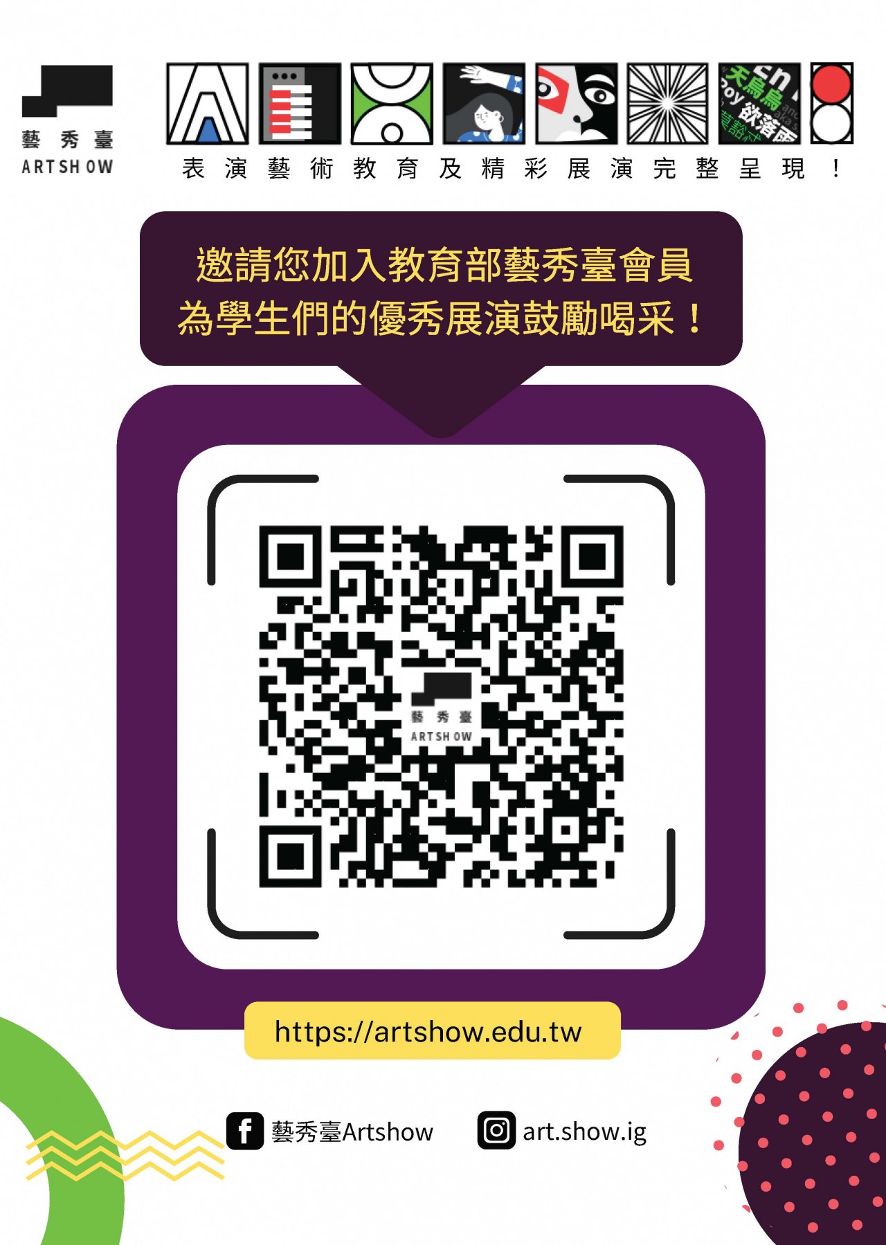 四、 | 「藝秀臺」將持續提供優質展演及表演藝術教育推廣內容,更多精采影片,請至「藝秀臺」網站,或至「藝秀臺」臉書粉絲專頁:臉書搜尋「藝秀臺ArtShow」、官方IG:搜尋「art.show.ig」關注即時訊息。 |