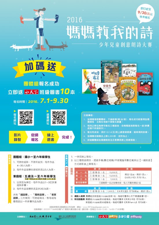 四、 | 欲參更多活動詳細資訊,請逕至活動官網http://www.2016readapoem.com.tw查詢。 |